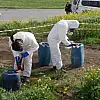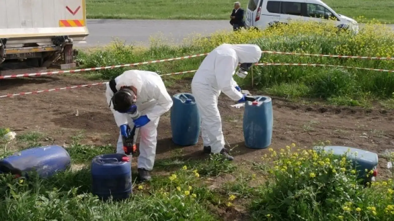 Ekiplerin içerisinde kimyasal madde olduğundan şüphelenilen varilleri incelemesi sürüyor.
