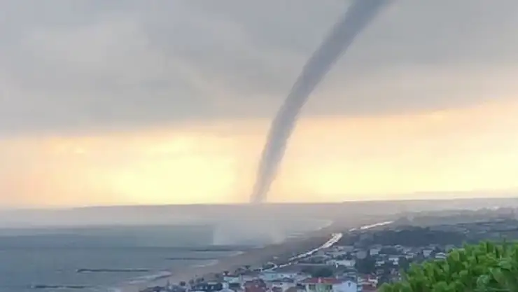 İstanbul Arnavutköy'de yoğun rüzgar ile ortaya çıkan, denizden sahile ilerledikten kısa bir süre sonra kaybolan hortum, vatandaşlar tarafından görüntülendi.