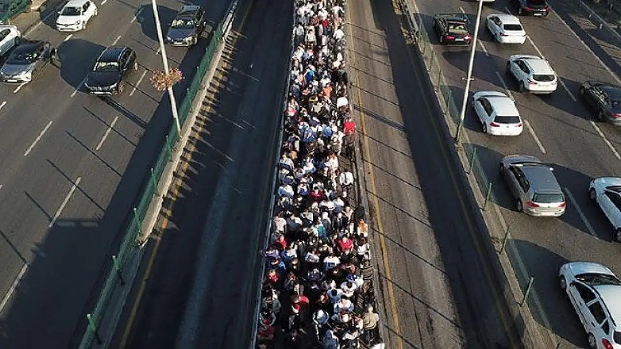 Altunizade metrobüs durağında sabah saatlerinde aşırı yoğunluk yaşandı. Yoğunluk havadan da görüntülendi.