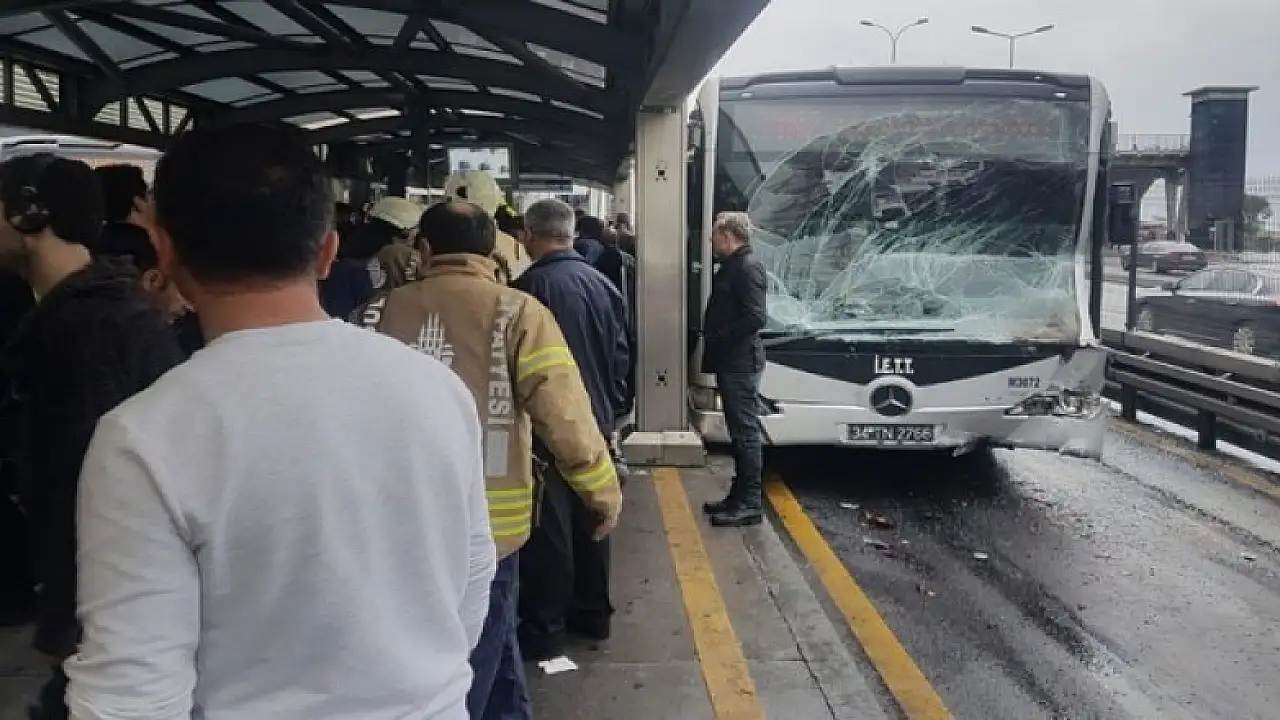 Haramidere durağında metrobüs direğe çarptı. Kazada 8 kişi yaralandı.
