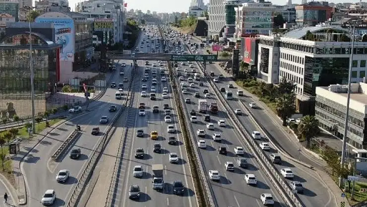 Trafik yoğunluğunun yaşandığı E-5 karayolu havadan görüntülendi.