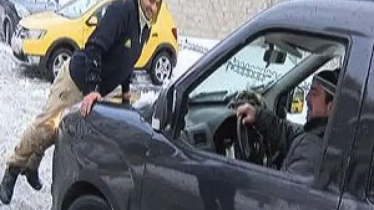 Bir türlü aracını çıkartamayan sürücü, “Kardan dolayı çıkamadık. Zincir vardı koptu” dedi.