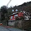 Beşiktaş'ta yoğun yağışın etkisiyle meydana gelen toprak kaymasında 2 katlı bir binanın ikinci katı çöktü.