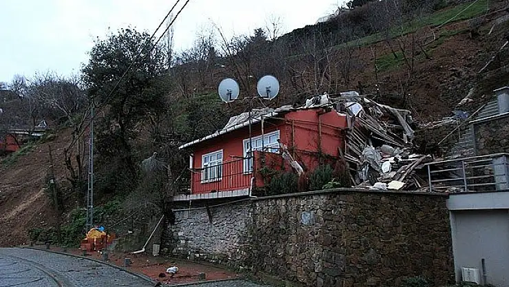 Alınan bilgiye göre, Arnavutköy Mahallesi Beyazgül Caddesi'nde yoğun yağışın etkisiyle toprak kayması meydana geldi. Heyelan sonucu cadde kenarındaki 2 katlı bir binanın ikinci katı çöktü.