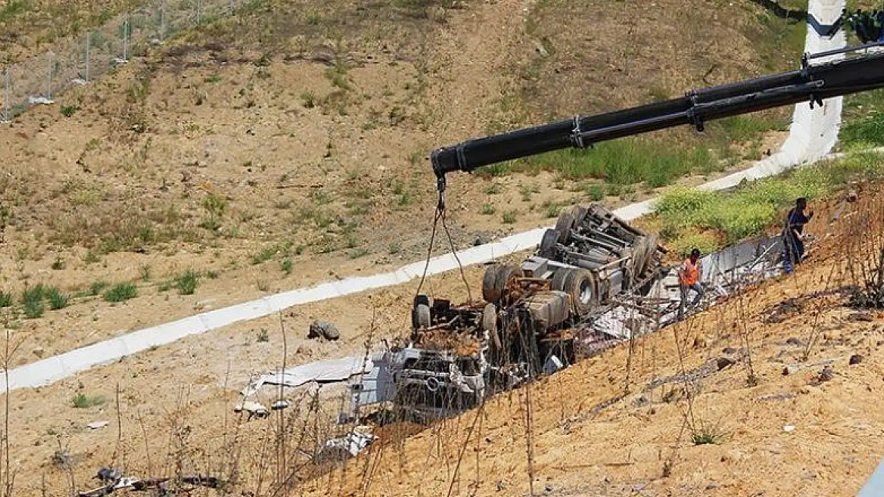 İstanbul Beykoz'da, refüje çarptıktan sonra uçuruma yuvarlanan tırın şoförü hayatını kaybetti.