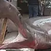 3.5 metre boyunda, 800 kilogram ağırlığındaki Pamuk cinsi köpek balığı, Muzaffer Balcı'nın Bulgurlu'daki balıkçı dükkanında sergilenmeye başladı.