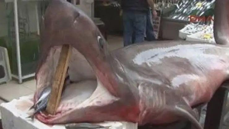 İstanbul Üsküdar'da, balıkçıların ağına 800 kilogramlık köpek balığı takıldı. Balıkçı tezgahında sergilenen köpek balığı vatandaşların ilgi odağı oldu.