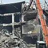 Yangının çıktığı bina, daha sonra iş makinesiyle yıkılmaya başlandı.