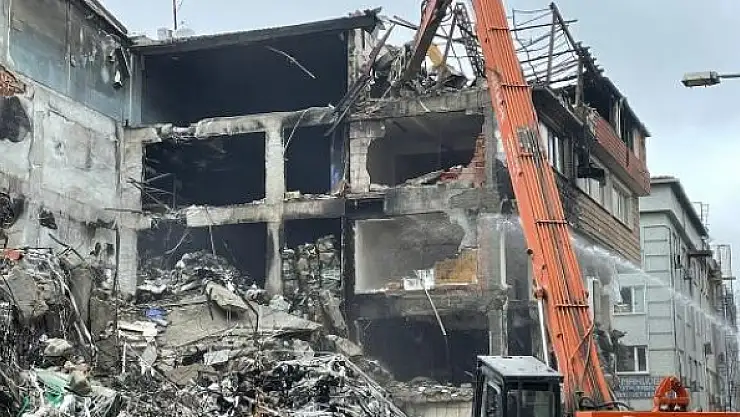 İstanbul'da yangında 5 kişinin hayatını kaybettiği bina yıkılıyor