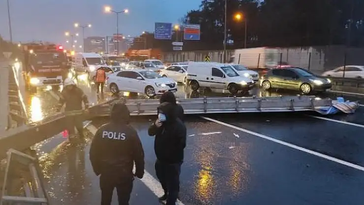 İstanbul'da yön tabelası yola devrildi, araçlar kaza yaptı