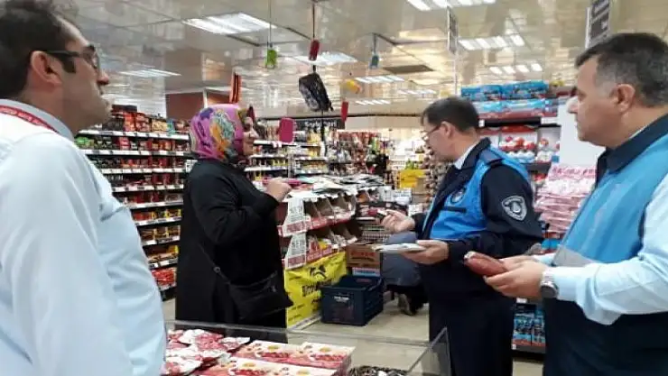 Ekipler, markette rafları dolaşarak etiketleri inceleyip fahiş oranda fiyat artışı yapılıp yapılmadığını tespit etmeye çalıştı.