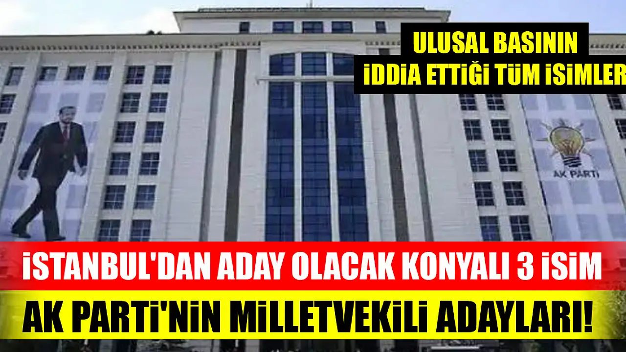 AK Parti'de milletvekili aday listesi üzerinde son çalışmalar sürerken isimler belli olmaya başladı. Ulusal basında yer alan iddialara göre AK Parti İstanbul Milletvekilliği için 3 Konyalının ismi ön plana çıktı.