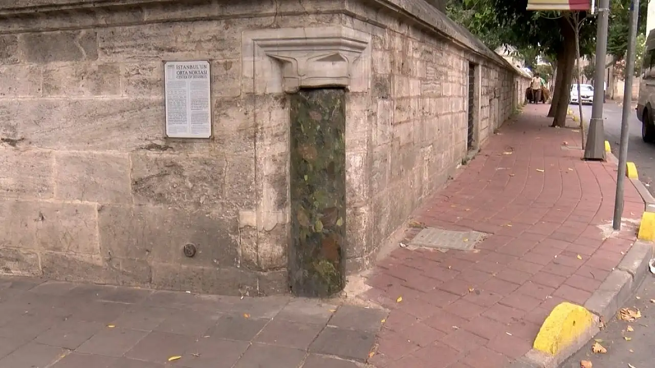 Arkeolog Ömer Faruk Yavaşçay, Şehzadebaşı Külliyesi'nin güneydoğu köşesine yerleştirilen yeşil granit taşın, Mimar Sinan tarafından suriçi İstanbul'un geometrik ağırlık merkezi olarak belirlenen, bir anıt nokta olduğunu kaydetti. Yavaşçay "Kanuni Sultan Süleyman, bazı kaynaklara göre vefat eden oğlu için bir camii yaptırmaya başlıyor. O sırada oğlu vefat ettiği için, kendisi için yaptırdığı külliyeyi oğluna adayarak, bu noktaya defnediyor. Dolayısıyla bu noktanın çok özel olmasını istiyor. Mimar Sinan'dan İstanbul'un orta noktasını seçmesini istiyor. Ardından Mimar Sinan ölçümler yapmaya başlıyor. Yan taraftaki yeşil sütunlu yeri tam orta nokta belirliyor ve yeşil sütunu bu noktaya koyuyor" diye konuştu. Yıllar sonra Evliya Çelebi'nin de bu noktayı kitaplarında anlattığını ifade eden Yavaşçay, "Günümüzde İstanbul'un en büyük markası olması gerekirken şu an çok kötü durumda. Herkes yanından geçiyor, kimse bu noktanın öneminin farkında değil. Taşın bir kısmı toprağın altına gömülmüş durumda. Buranın acilen kurtarılması lazım. Kırılmaz bir camla çevresinin kaplanması lazım. Burası manevi bir yer olduğu için insanlar parçalarını alıp satabilirler. Ayrıca üzerine yazı yazıyorlar, kırıyorlar. Önünde kaldırım taşları var, bu taşlardan arındırıp daha estetik hale getirilmesi lazım" dedi.