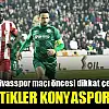 Bu sezon Süper Lig'de kötü günler geçiren ve istikrar yakalayamayan İttifak Holding Konyaspor, son maçında Gençlerbirliği karşısında aldığı 2-1'lik mağlubiyetin ardından ateş hattının sıcaklığını hissetmeye başladı. 28.hafta maçında bu sezonun kuvvetli ekiplerinden Demir Grup Sivasspor'u konuk edecek olan yeşil beyazlılar bu maça mutlak 3 puan parolasıyla hazırlanıyor. Kırmızı kart cezaları tamamlanan Ömer Ali Şahiner ve Nejc Skubic'in de bu hafta oynayabilecek olmasıyla maça güçlü bir kadroyla çıkacak olan Anadolu Kartalı, karşılaşmadan galibiyetle ayrılarak bir nebze de olsa rahatlamayı hedefliyor.