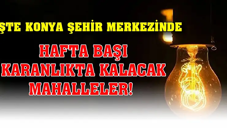 İşte Konya şehir merkezinde hafta başı karanlıkta kalacak mahalleler!