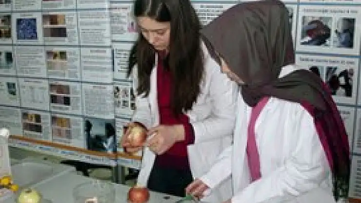 Öğrencilerden Fatma Nurbanu, yaptığı açıklamada, halk arasında çok bilinen soğan suyu ve bal karışımının boğaz enfeksiyonuna etkisini bilimsel olarak araştırdıklarını söyledi.