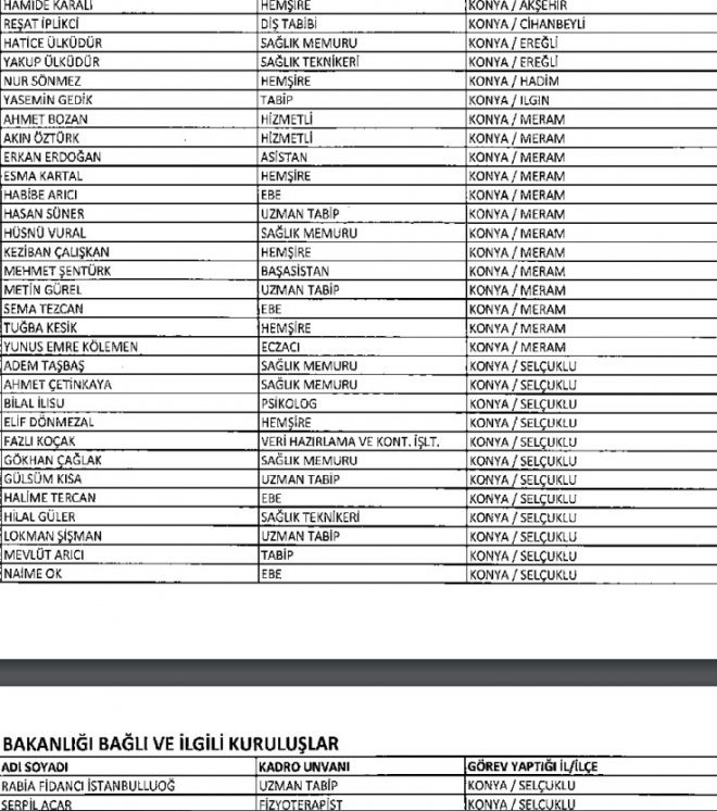 İşte Konya'da kamudan çıkarılan sağlıkçıların listesi
