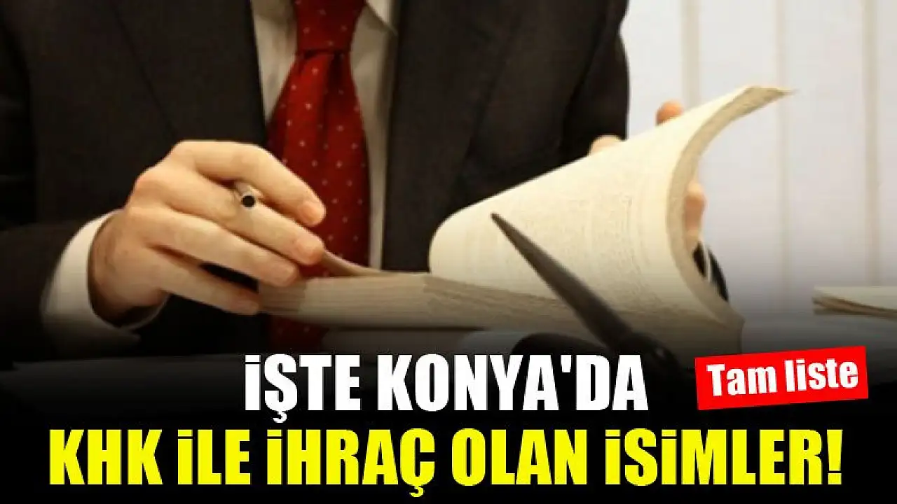 Olağanüstü Hal kapsamında 701 sayılı kanun hükmünde kararname Resmi Gazete'de yayımlandı. 701 sayılı Kanun Hükmünde Kararname ile çeşitli kurumlarda görev yapan 18 bin 632 personel kamudan ihraç edildi. İşte Konya'da ihraç olan isimler: