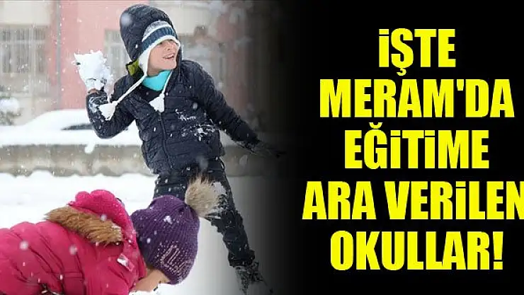 Konya İl Milli Eğitim Müdürlüğü'nden yapılan açıklamada, Yoğun kar yağışı/buzlanma/uzun süreli elektrik kesintisinden dolayı mağduriyet nedeniyle İlçe Hıfzı's-Sıhha Kurulu Kararıyla Meram ilçemiz;