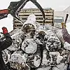 Kütahya'nın Domaniç ilçesinde bin 500 rakımlı Kocayayla Geçidi'nde çalışan orman istif işçilerinin, dondurucu soğukta kalınlığı 2 metreye ulaşan karın altından çıkardığı tomruklar, işlenmek üzere Bursa'nın İnegöl ilçesindeki mobilya fabrikalarına gönderiliyor.