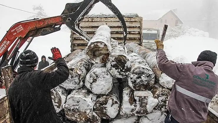Tomrukların, kamyonlara yüklendikten sonra mobilya olarak işlenmek üzere İnegöl'deki fabrikalara gönderildiğini dile getiren Akgüneş, "Fabrika ve atölyeler yaz kış demeden üretim yapıyor. Biz de bir fabrikadan gelen talep üzerine zor durumda kalmamaları için zorlu kış şartlarında buraya çıktık. Beş kişilik ekibimizle tomrukları İnegöl'e göndermek üzere kamyonlara yüklüyoruz." dedi.