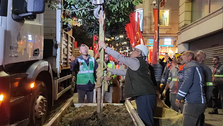 150 ağacın ekipler tarafından çıkarılmasının ardından 90 beton saksı da vinç yardımıyla kaldırılacak. Ağaçların daha sonra parklara dikileceği öğrenildi.