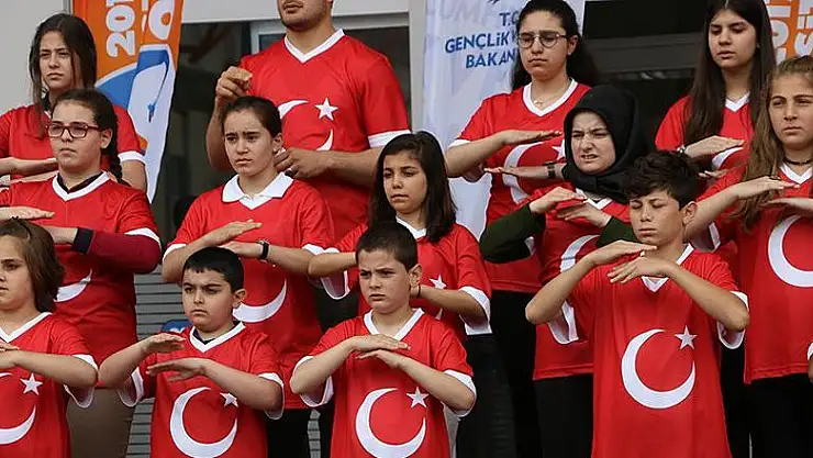 19 Mayıs Atatürk'ü Anma, Gençlik ve Spor Bayramı etkinleri kapsamında Olimpiyat Oyunları Genel Koordinatörlüğü önünde düzenlenen etkinlikte, üzerinde Türk bayrağı bulunan tişört giyen sporcular ile işitme engelli 50 kişiden oluşan koro, işaret diliyle İstiklal Marşı'nı söyledi.
