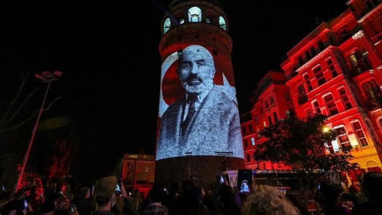 Kültür ve Turizm Bakanlığı tarafından İstiklal Marşı'nın kabulünün 100. yıl dönümü için Galata Kulesi'nde özel bir gösterim hazırlandı. Lazer gösterisi eşliğindeki etkinliğin başlangıcında, Devlet Opera ve Balesi Genel Müdürü ve Sanat Yönetmeni Murat Karahan, İstiklal Marşı'nın ilk iki kıtasını seslendirirken, çevre halkı da marşa eşlik etti.