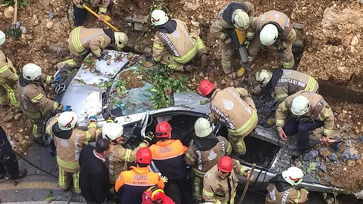 Çökme anı güvenlik kameralarına yansıdı. Görüntülerde, bazı araçların yoldan geçmesinin hemen ardından istinat duvarının çökmesi ve bir minibüsün göçük altında kalması yer alıyor.