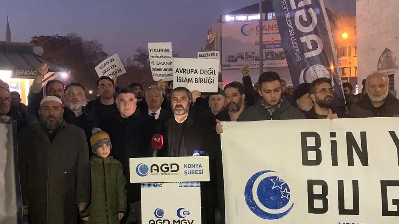 İsveç'te Kur'an-ı Kerim'in yakılması Konya'da protesto edildi