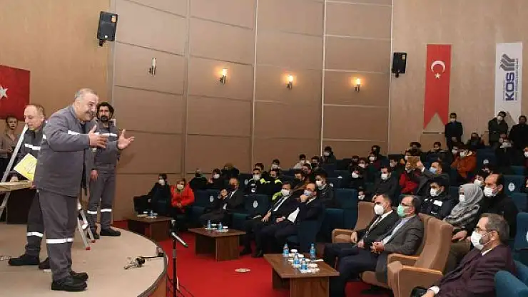 Konya Organize Sanayi Bölgesi'nde düzenlenen tiyatral eğitimin açılışında konuşan Vali Özkan ve KSO Başkanı Kütükcü, işverenlere ve çalışanlara iş sağlığı ve güvenliği önlemlerine hassasiyetle dikkat etmeleri çağrısında bulundu. Sanayi ve Teknoloji İl Müdürü Vehbi Konarılı, Mevlana Kalkınma Ajansı (MEVKA) Genel Sekreteri İhsan Bostancı'nın da katıldığı programın açılışında konuşan Konya Sanayi Odası (KSO) Başkanı Memiş Kütükcü, çalışanların sağlığını korumak ve üretimin sürdürülebilirliği için iş sağlığı ve güvenliğinin hayati önem taşıdığını söyledi. Kütükcü, "Konyamız artık 3 milyar dolar ihracat yapan, Türkiye'nin en güçlü organize sanayi bölgelerini inşa eden, sektöründe lider firmaların olduğu çok net bir sanayi ve üretim şehri. Dolayısıyla tüm işverenlerimizi iş yerlerinde gerekli tedbirleri almaya, çalışanlarımızı da bu kurallara uymaya davet ediyorum" dedi.