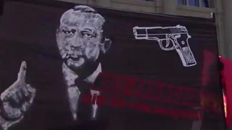 İsviçre'de Cumhurbaşkanı Recep Tayyip Erdoğan aleyhine açılan pankartın sorumluluğunu Devrim Gençlik Bern adlı anarşist örgüt üstlendi.