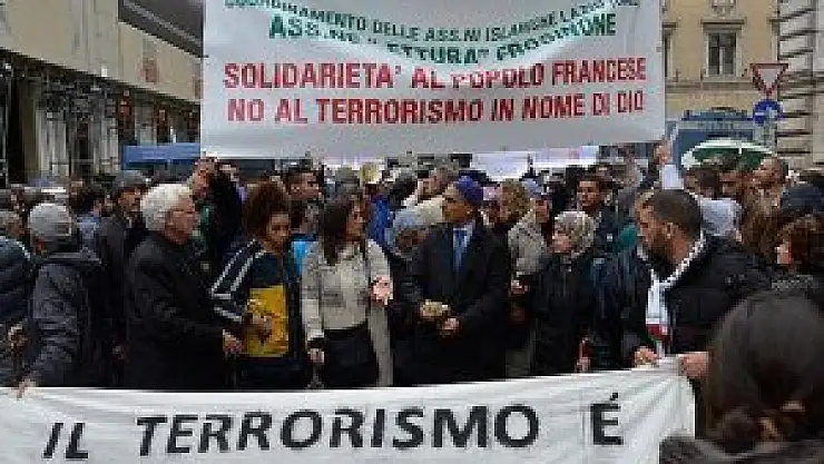 İtalya'da yaşayan Müslümanlar, Fransa'nın başkenti Paris'te geçen hafta meydana gelen terör saldırılarını ve 'terörün İslamiyet ile birlikte anılmasını' protesto etti.