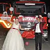 Manisa’nın Turgutlu ilçesinde itfaiye eri olarak görev yapan bir kişi düğündegelin arabası olarak itfaiye aracını tercih etti.