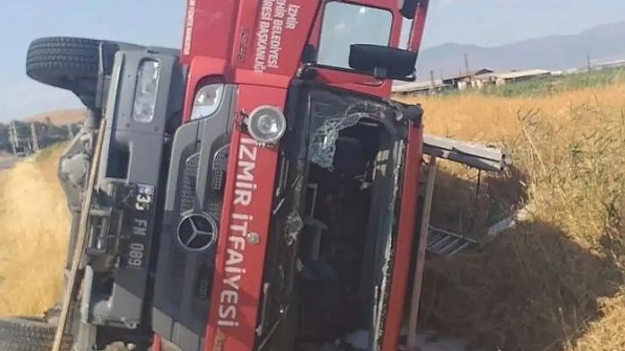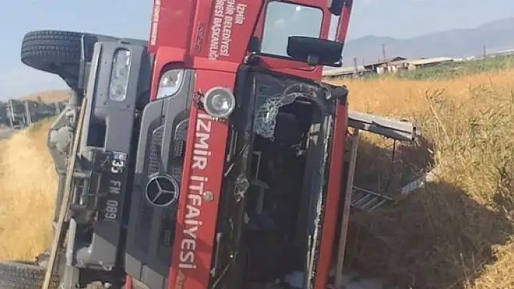İzmir'de yangına müdahale etmek için yola çıkan itfaiye aracı kaza yaptı. Devrilen itfaiye aracının içerisindeki 3 itfaiye personeli yaralandı.