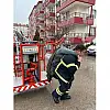 Aksaray'da yan dairesinde çıkan yangın nedeniyle oluşan yoğun dumanda mahsur kalan yaşlı kadın, yangın merdiveniyle daireye ulaşın itfaiye tarafından kurtarıldı. Ayaklarından rahatsız olan yaşlı kadını, itfaiye eri sırtına alarak yangın merdiveni sepetinden indirdi.