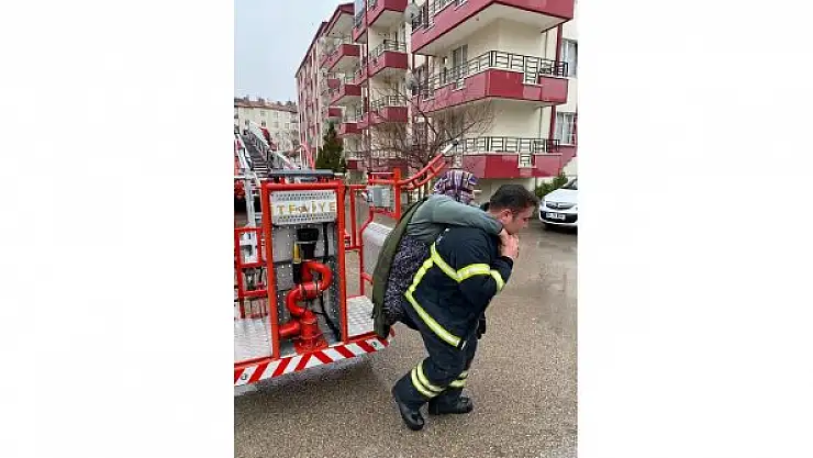 İtfaiye eri, yangında mahsur kalan yaşlı kadını sırtında indirdi