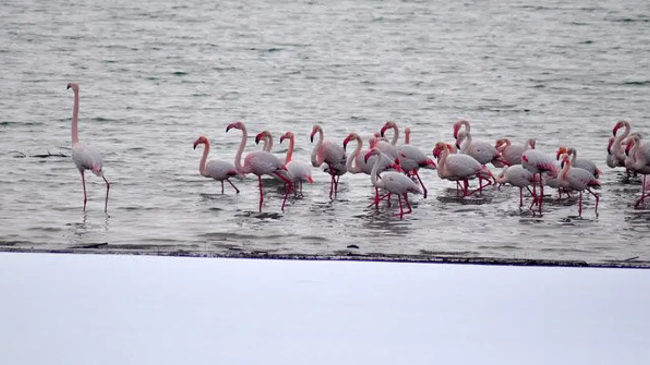 Ülke genelindeki sulak alanların donması nedeniyle flamingolar, suyu donmayan baraj gölü ve sulama göletlerine yöneldi.