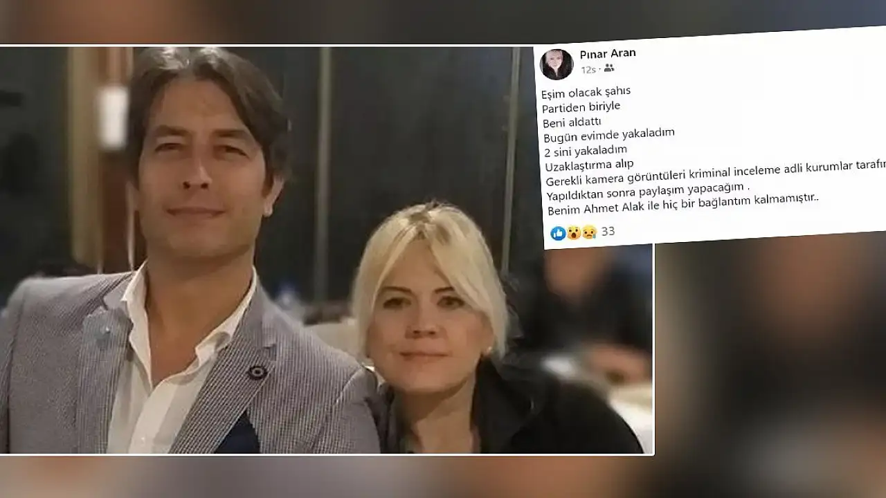 İYİ Parti İncirliova İlçe Başkanı Ahmet Alak'ın eşi Pınar Alak, eşini kendi evlerinde başka bir kadınla yakaladığını sosyal medya hesabından paylaştı.