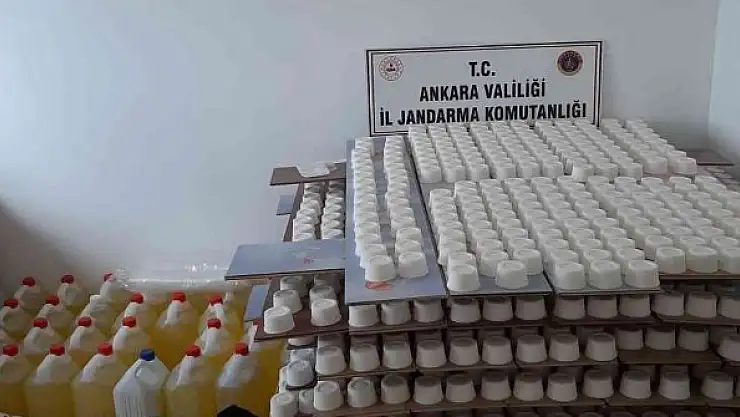 Edinilen bilgiye göre, Ankara İl Jandarma Komutanlığı ekiplerince suç ve suçluluk faaliyetlerinin önlenmesine yönelik sürdürülen çalışmalarda 9 Haziran'da Ö.Ş. adlı şahsın izinsiz temizlik maddesi üretimi yaptığı bilgisine ulaşıldı. Ankara Cumhuriyet Başsavcılığı koordinesinde Ankara İl Jandarma Komutanlığı ekiplerince şahsın evinde yapılan aramada 190 litre sıvı kimyasal solüsyon, 1 ton 600 kilogram deniz tuzu ve 7 bin adet kalıp temizlik malzemesi ele geçirildi. Malzemelerine el konulurken, şahıs hakkında adli işlem başlatıldı.