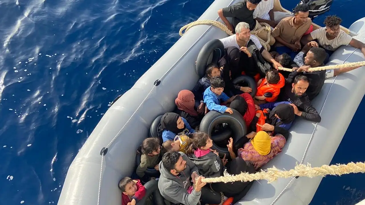 Ekipler, durdurduğu lastik bottaki 9'u çocuk 17 düzensiz göçmeni yakaladı.