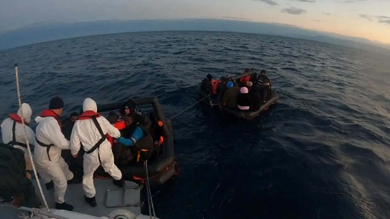 Ekipler, Yunanistan unsurlarınca Türk kara sularına geri itilen 2 can salı içerisindeki 45 düzensiz göçmeni kurtardı.