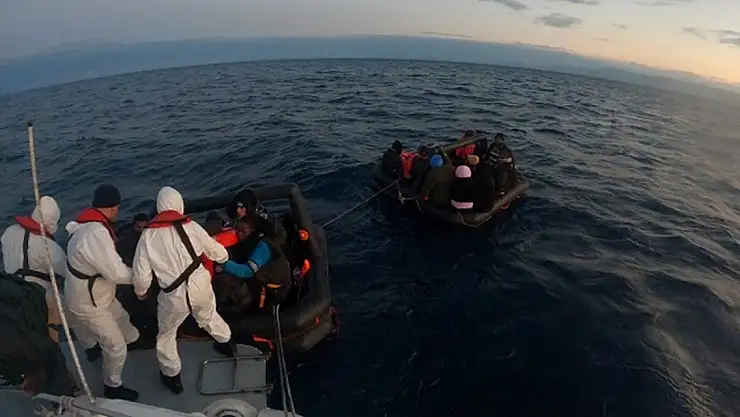 İzmir'in Dikili ilçesinde Yunanistan unsurlarınca Türk kara sularına itilen 45 düzensiz göçmen kurtarıldı.