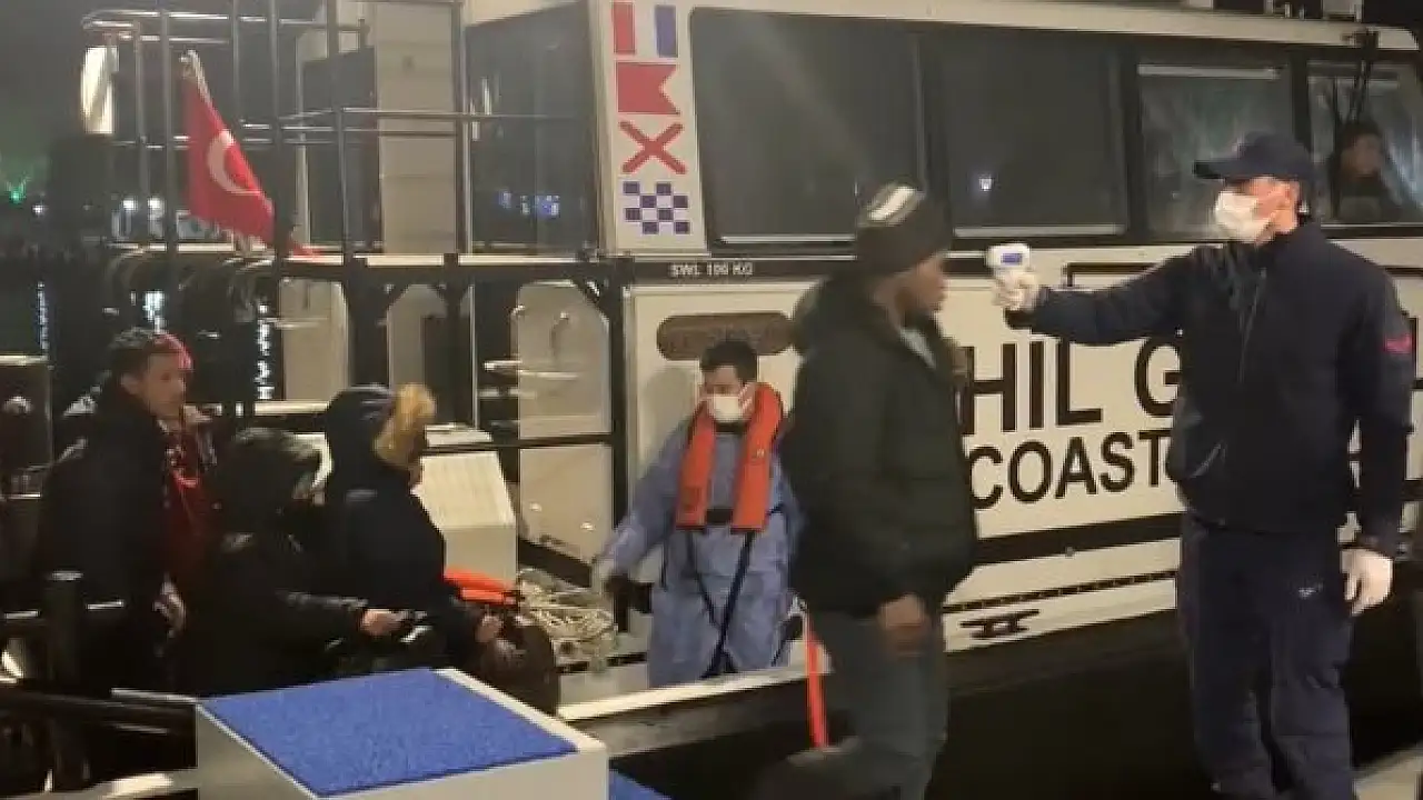 Sahil Güvenlik ekipleri, Çeşme ilçesi açıklarında 5 Nisan gecesi saat 01.00 ile 02.20 sıralarında yasak yollar ile yurt dışına kaçmaya çalışan düzensiz göçmenlerin olduğu ihbarı üzerine harekete geçti. Harekete geçen ekipler, 2 hareketli lastik botu durdurdu. Toplamda 61 düzensiz göçmen, yurt dışına çıkmaya çalışırken ekipler tarafından yakalandı.