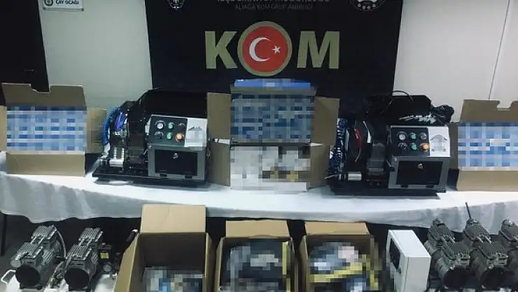 Aliağa İlçe Emniyet Müdürlüğü Kaçakçılıkla Mücadele Grup Amirliği ekipleri, Menemen, Bergama ve Kınık ilçelerinde sigara kaçakçılarına operasyon yaptı. İş yeri ve ikametlere baskınlar yapılırken, operasyonda; 44 bin adet kıyılmış tütünle doldurulmuş makaron, 70 bin 400 adet boş makaron, iki adet sigara doldurma makinesi, üç adet kompresör ele geçirildi. Olayla ilgili M.K., A.B., S.Y., S.A., Y.Ç isimli 4 şüpheli gözaltına alınırken, kişiler hakkında adli işlem yapıldı.