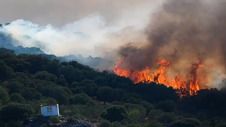 Kentte dün akşam saat 21.10'da çıkan yangına İzmir Orman Bölge Müdürlüğünden 13 arazöz, 3 su ikmal aracı, 2 dozer ve 3 yer ekibiyle müdahale edilmeye başlanmıştı.