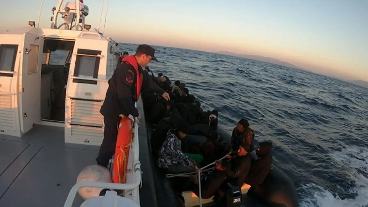 Bunun üzerine görevlendirilen Sahil Güvenlik Kaçakçılık ve Organize Suçlarla Mücadele Timi ile İzmir İl Jandarma Komutanlığı ekipleri, 22'si çocuk 55 düzensiz göçmeni yakaladı.