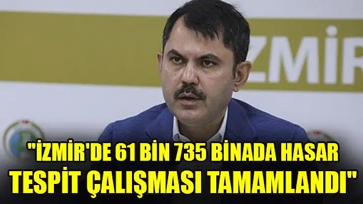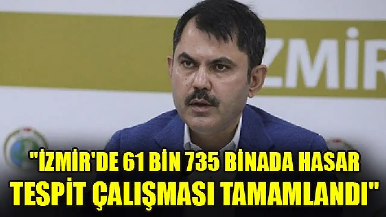 Çevre ve Şehircilik Bakanı Kurum, '(İzmir'de) Bugün itibarıyla 61 bin 735 binada, 348 bin bağımsız bölümde hasar tespit çalışması tamamlanmıştır' dedi.