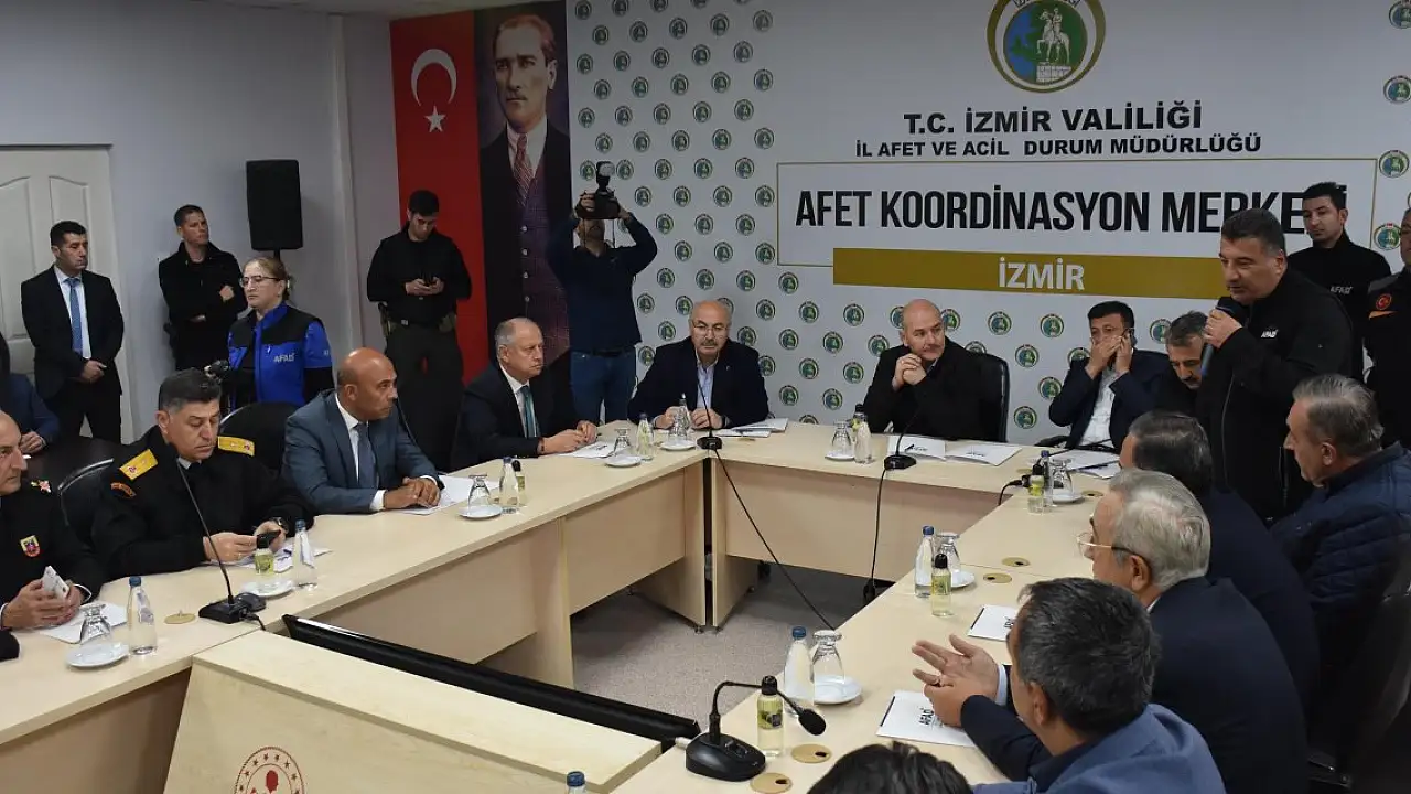 İzmir'e 4.9 büyüklüğündeki depremin ardından gelip, merkez üssü Buca ilçesine giden İçişleri Bakanı Süleyman Soylu, daha sonra İl Afet ve Koordinasyon Merkezi'ne geçti.