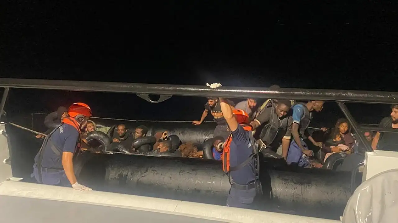 Bölgeye yönlendirilen sahil güvenlik botu tarafından durdurulan lastik bottaki 5'i çocuk 30 düzensiz göçmen yakalandı.